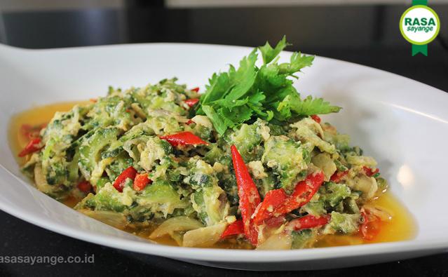 2 buah pare dibelah dua, buang bagian