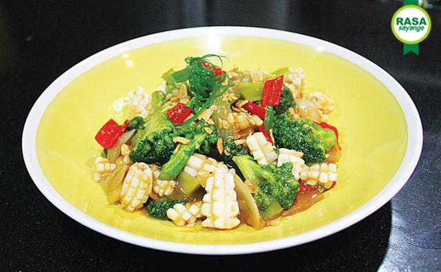 4. Masukkan paprika dan cumi, tumis hingga cumi matang.