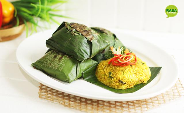6. Bungkus dengan daun pisang 2 lapis daun, lakukan hingga selesai.