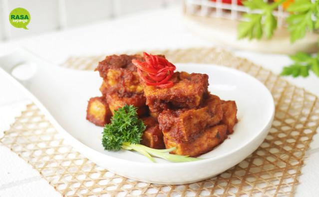 5. Masukkan tahu. Masak sampai bumbu kental dan matang.