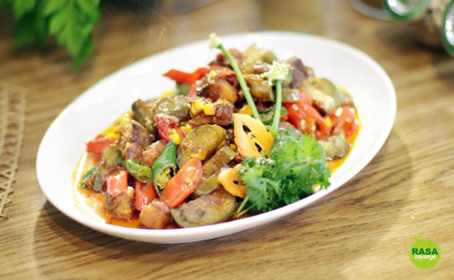 3. Masukkan cabe merah, cabe hijau, terong dan jagung kemudian tumis sebentar.