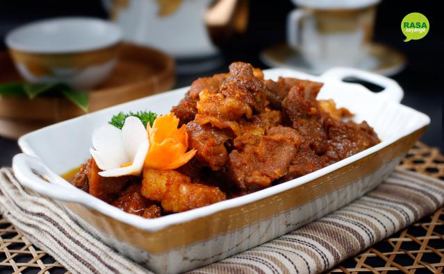 2. Panaskan minyak kelapa lalu tumis bumbu halus hingga harum dan matang kemudian masukkan daging, aduk-aduk hingga cukup meresap dan daging mulai empuk.